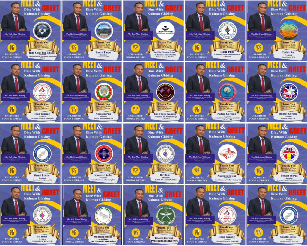 नेपलिज ड्राइभिङ इन्सट्रक्टर एसोसिएसन यूके, गुल्मी जिल्ला समाज यूके, ब्रिटिश गोर्खा वेलफेयर सोसाइटी, मगर संघ यूके, इलाम सोसाइटी यूके, धादिङ नुवाकोट समाज यूके, बुटवल सेरोफेरो समाज यूके, प्रथम नौमति बाजा गुल्मी यूके, म्याग्दी ओभरसीज नेपलिज एसोसिएसन यूके (मोना), स्याङ्जा समाज यूके, पांचथर समाज सेवा यूके, किरात याक्थुङ चुम्लुङ यूके, मगर संघ यूके यूएचएसबी ब्रान्च, किरात सुनुवार वेलफेयर सोसाइटी यूके, ओभरसिज नेपाली युनिफाइड सोसाइटी यूके, इन्टेक १९९६, एएफसी गुल्मेली थरभाई यूके, स्यान्डस्ट नेपलिज कम्युनिटी, नेपलिज युथ यूके ड्रागन गाइज लगायत संस्था र व्यक्तिहरुले टेबुल कन्फर्म गरिसकेको गाहामगरले जनाए ।